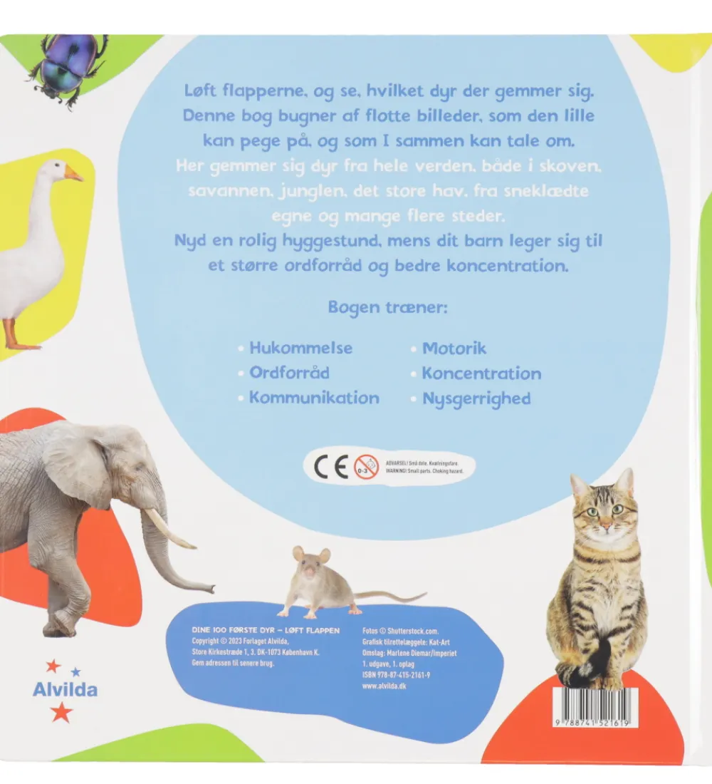 Alvilda bogen er spændende og informativ og udforsker en verden af dyr med mere end 80 sjove flapper, der inviterer til interaktiv leg og læring. Denne bog stimulerer og træner både nysgerrigheden, hukommelsen, motorikken, ordforrådet, kommunikation og koncentration hos børn, mens de opdager forskellige dyrearter på en engagerende måde.