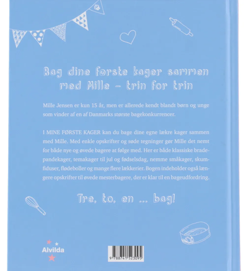 Fin Alvilda kogebog med titlen “Mine første kager”.