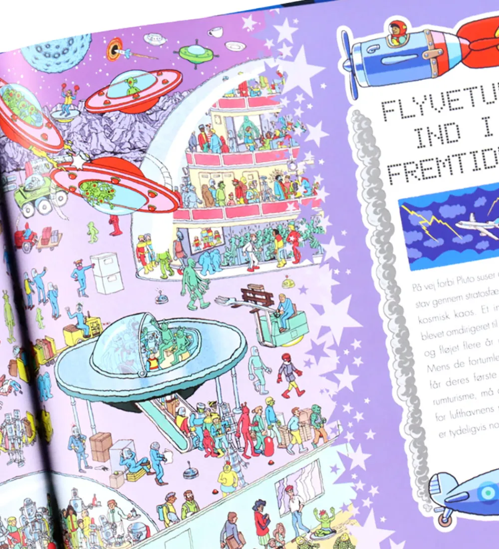 Alvilda bogen er en kig og find-bog, der indeholder sprudlende illustrationer med et mylder af detaljer, hvor børn kan fordybe sig i at lede efter udvalgte motiver.