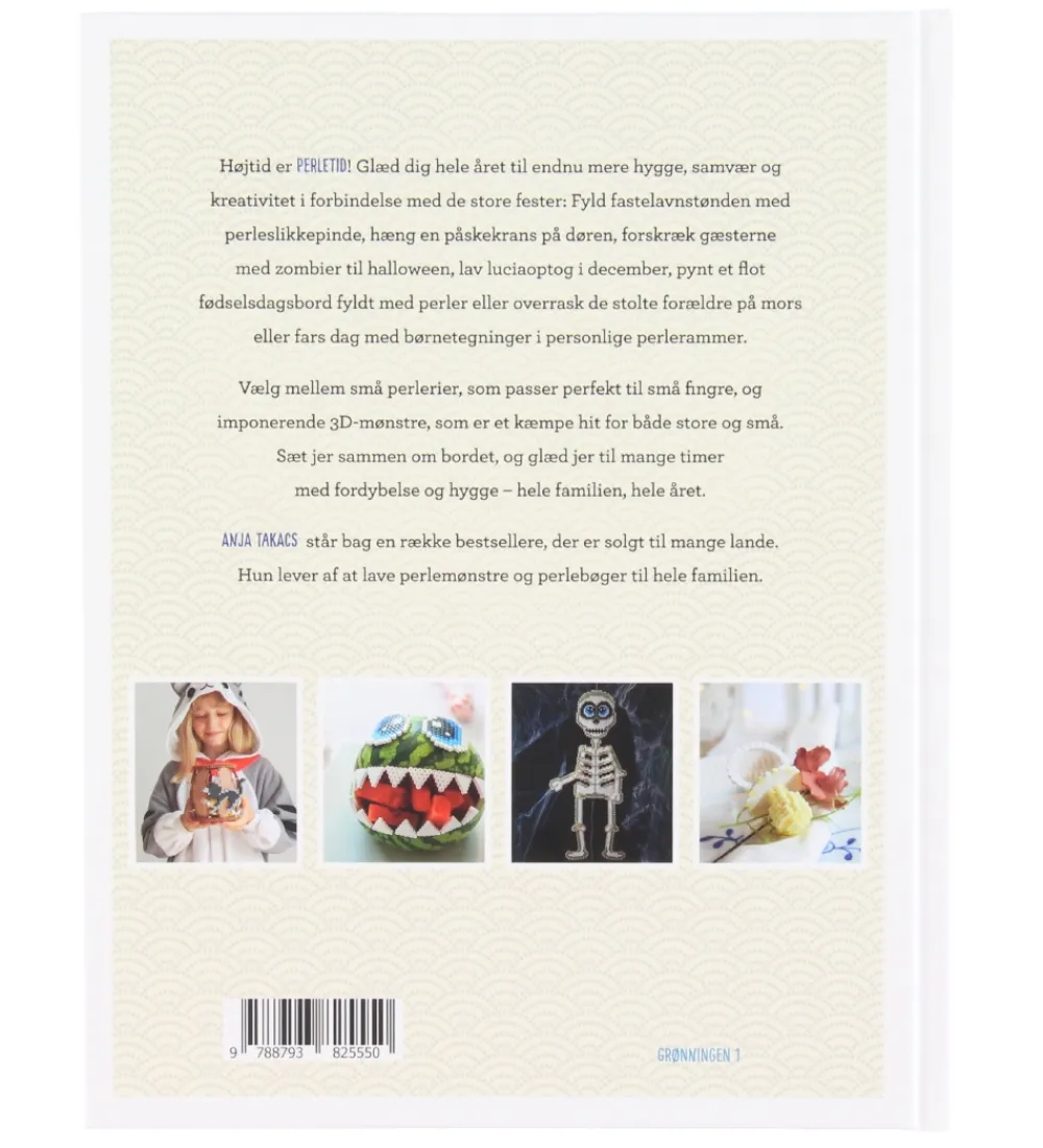 Anja Takacs bogen “Perletid” indeholder nytænkende, sjove og inspirerende ideer til brugen af perler- og perlepladerne. Bogen indeholder motiver til årets forskellieg højtider som f.eks. fastelavn, halloween, fødselsdag, barnedåb eller påske.
