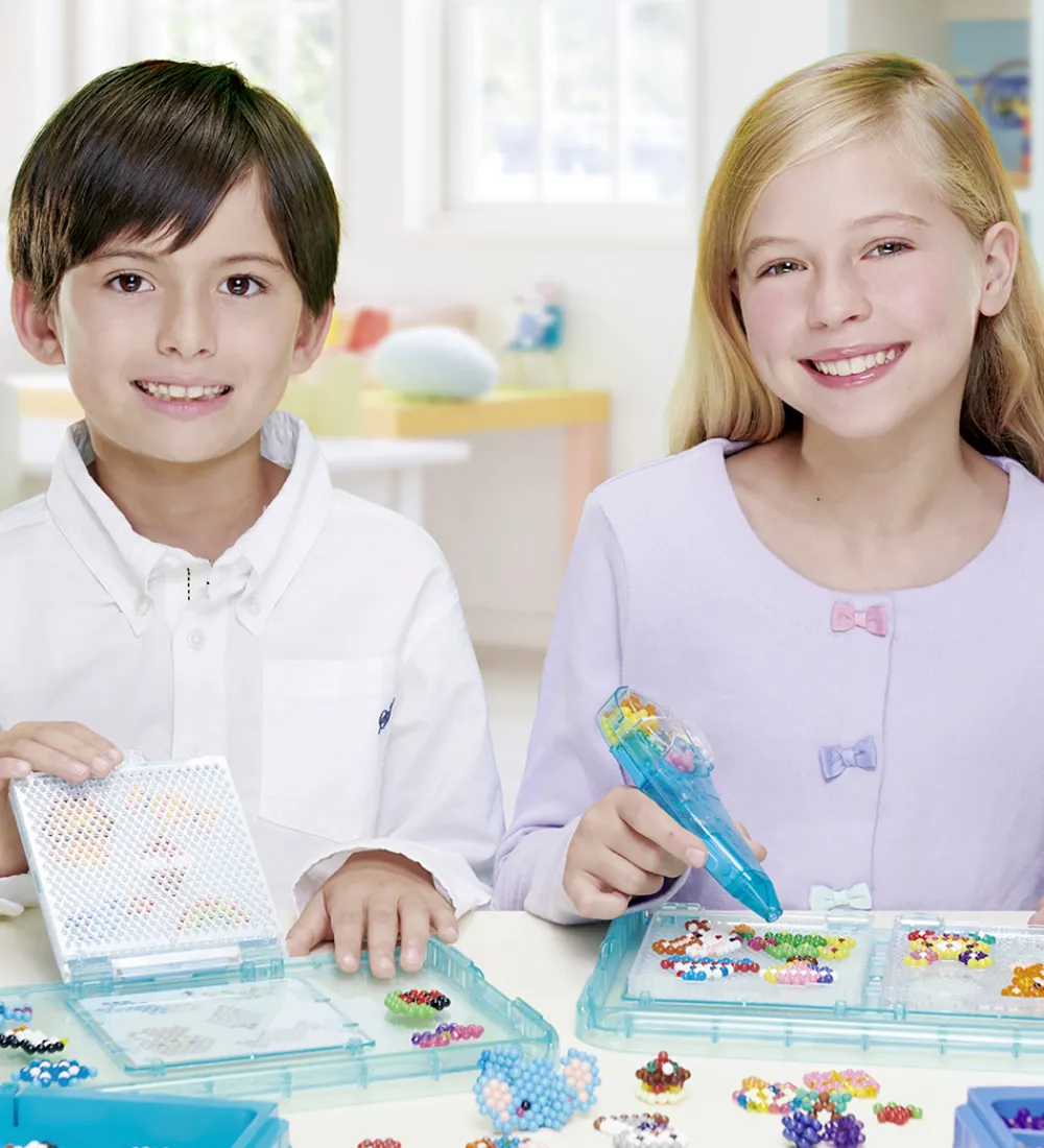 Aquabeads perlerne er med til at styrke barnets kreativitet, samtidig med at udvikle finmotorikken på en sjov og spændende måde. Perlerne tørrer ved hjælp af vand. Lav en kreation, spray med vand og lad kreationen tørre.