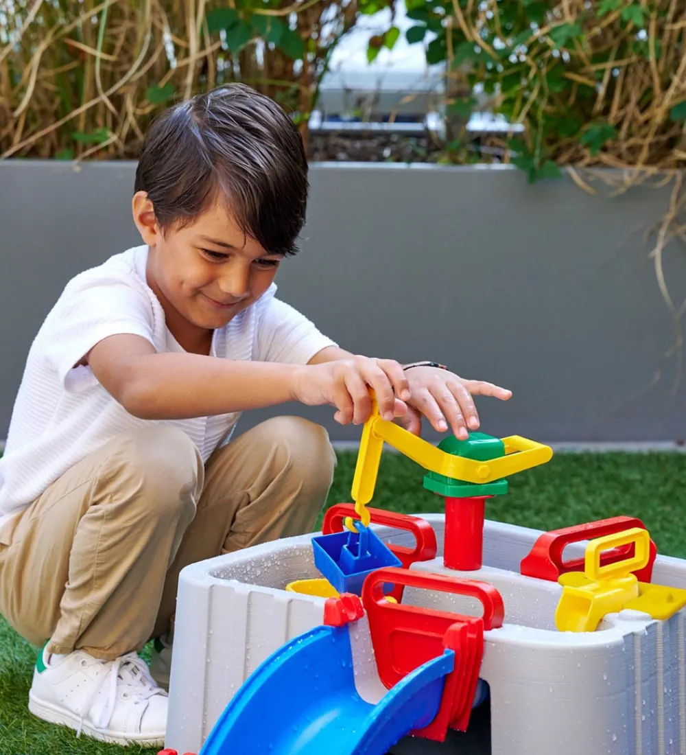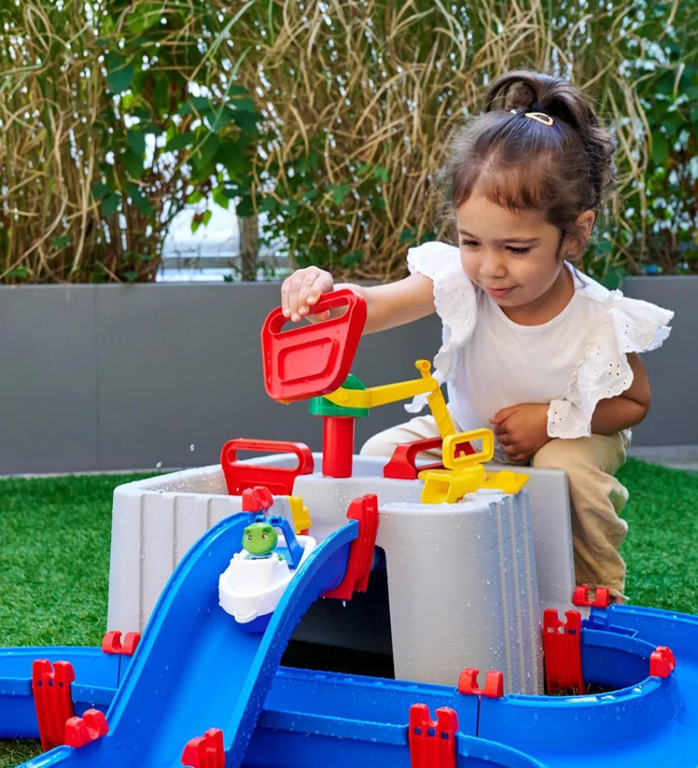 AquaPlay legesættet er beregnet til at komme vand ned i, hvorefter de forskellige funktioner vil vise sig. Herefter kan barnet selv styre, hvordan vandet skal løbe, og ved at åbne en sluse, kan man lade en båd suse ned ad en slidske og ud i kanalen.