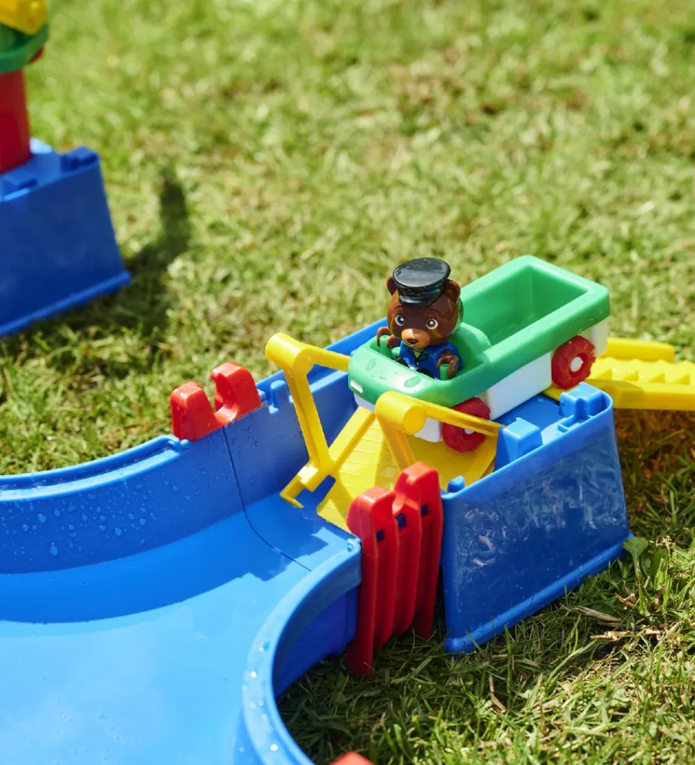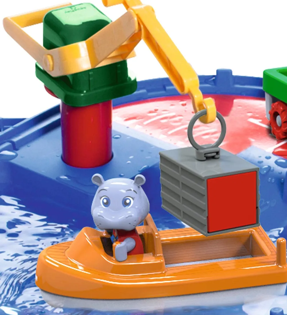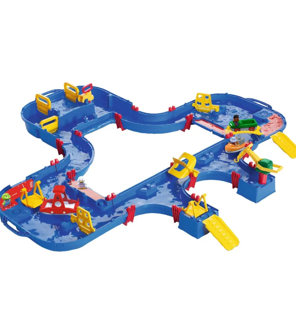 AquaPlay legesættet er beregnet til sjov med vand, hvor alle kan være med. Børnene kan ved hjælp af håndsving, broer, pumper, kran og sluse finde på masser af sjove ting at gøre med vandet. Vandkanalen har brede vandveje og ved at dreje håndsvinget kan bådene sejle rundt. Sættet stimulerer børnenes kreativitet og fantasi.