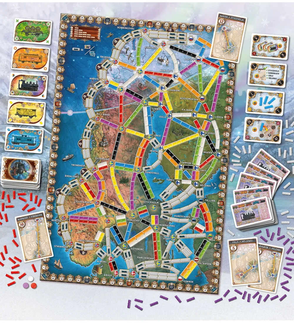 Sjovt Ticket to Ride brætspil i en særlig Northern Lights-udgave af det meget populære brætspil.