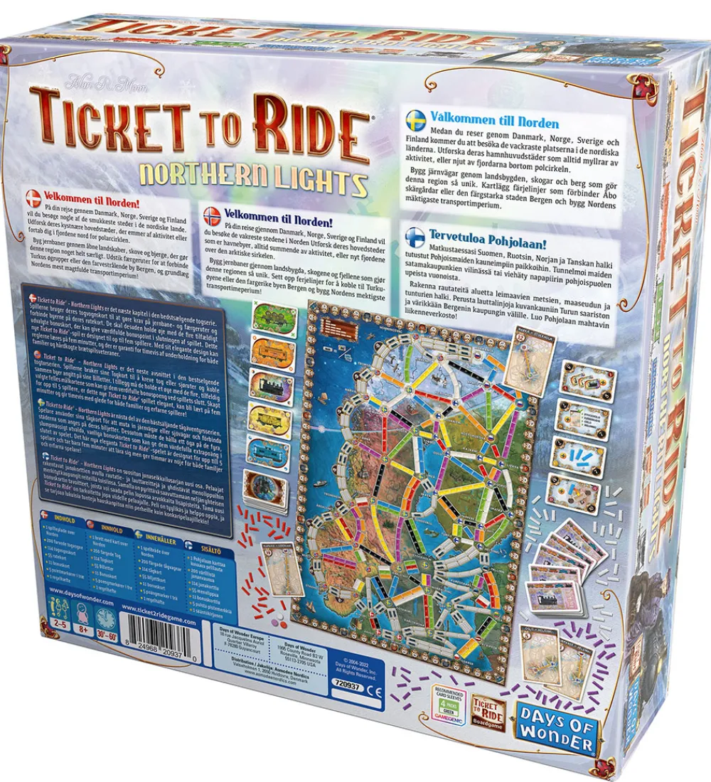 I Ticket to Ride Northern Lights spiller man på en spilleplade over Danmark, Norge, Sverige og Finland, hvor det gælder om at gøre krav på jernbane- og færgeruter og forbinde byerne på deres rutekort.