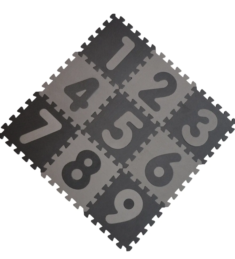 Sjovt BabyDan legegulv i to grå nuancer med tallene 1-9.