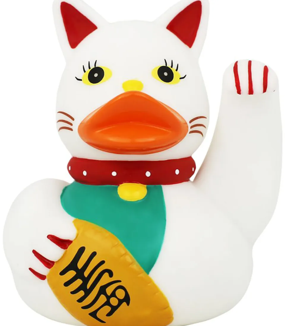 Sød badeand i hvid i form af en vinkende kat.