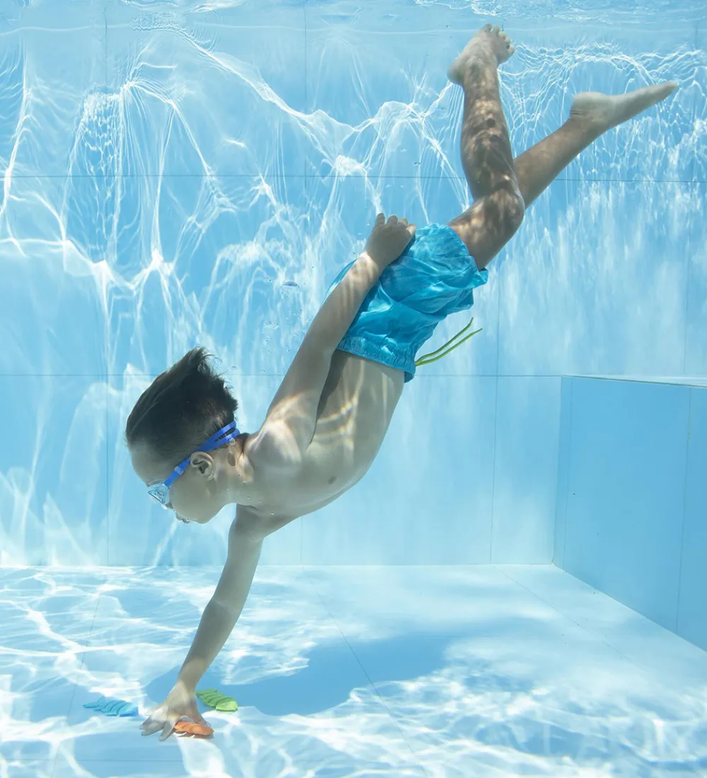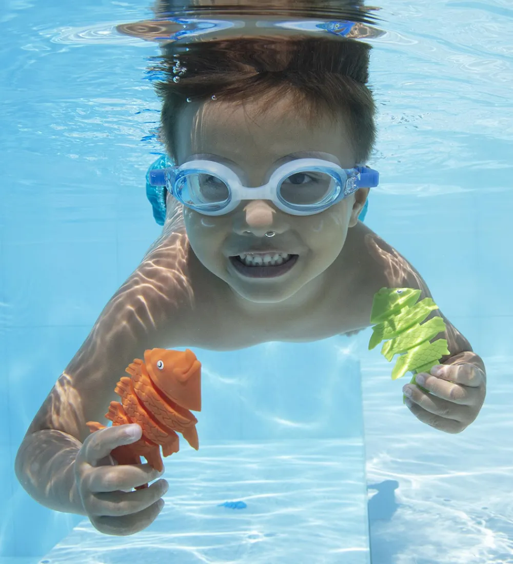 Bestway badelegetøjet er sjove at have med i poolen eller badekarret, da de synker til bunds, så man kan dykke efter dem. Badelegetøjet fremmer hånd/øje-koordinationen og rumfornemmelsen. De er frie for latex.