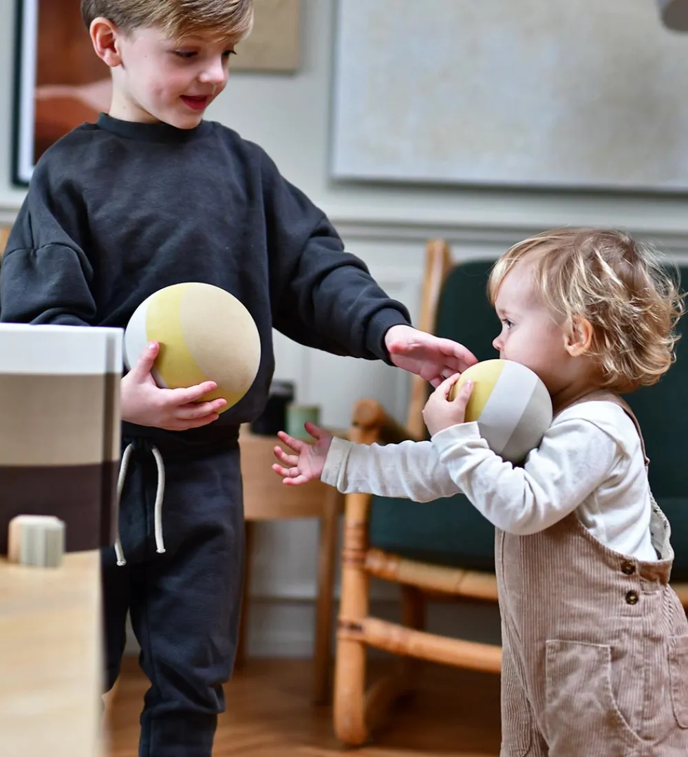 Søde bObles bolde i rosa, grå, beige og lysegul. Boldene sælges som et sæt af tre med forskellige størrelser.