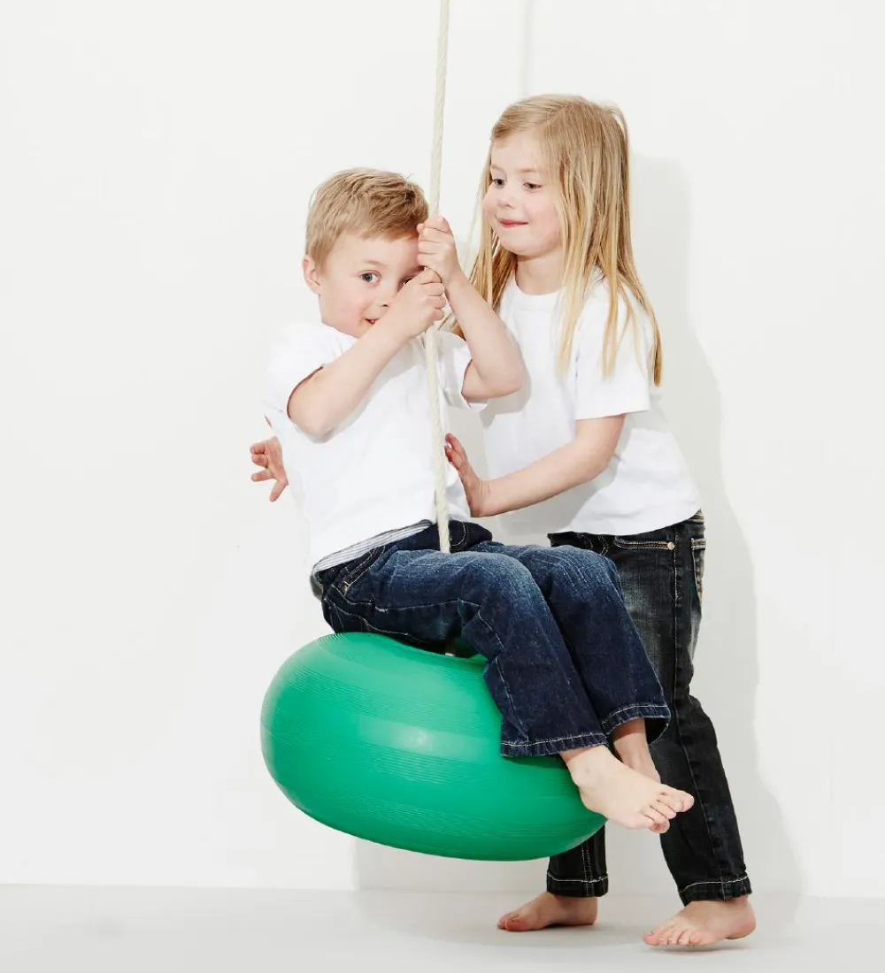 BObles donutgyngen inviterer børn i alle aldre til leg og sjov, der udfordrer og udvikler motorikken. Den kan hænges op i træ udenfor eller i loftet indenfor. Det er let at justere længden på gyngens reb, og der sidder et metaløje i, så det er let at hænge den op i en krog.