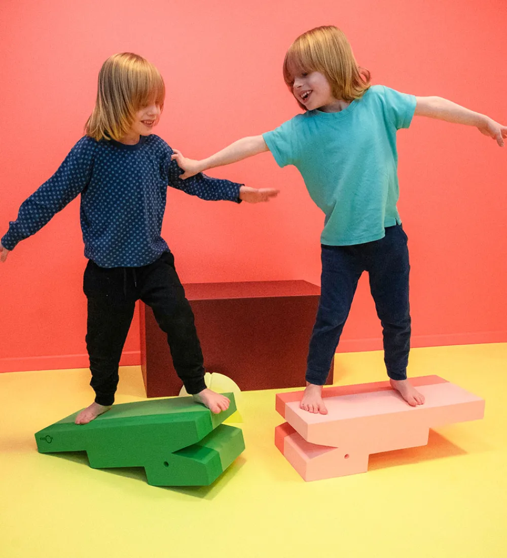 Krokodillen udfordrer sanserne hos små og store børn. Her kan det lille barn øve sig i at gå op ad trapper, hoppe ud fra forskellige højder fra krokodillens skrå ryg eller forsøge at holde balancen, når krokodillen bliver vent på hovedet.