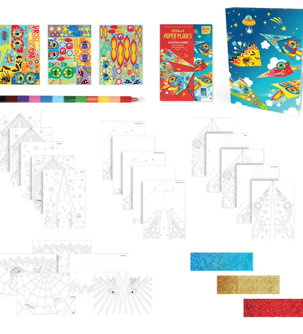 Spændende BOX CANDIY kreasæt i form af dette sæt af farverige papirfly.