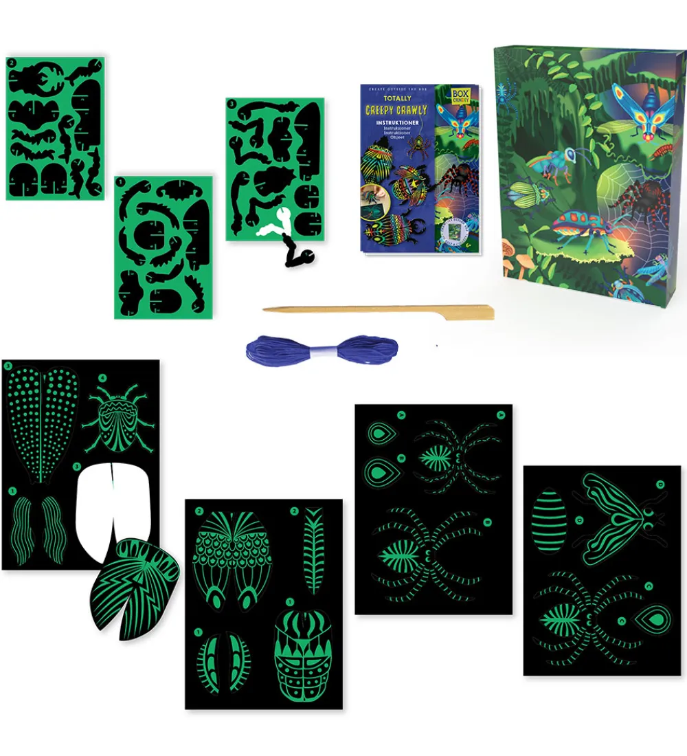 Spændende BOX CANDIY kreasæt i form af disse 3D skrabekort med temaet “Totally Creepy Crawly”, hvor det er muligt at samle i alt 5 DIY-insekter.
