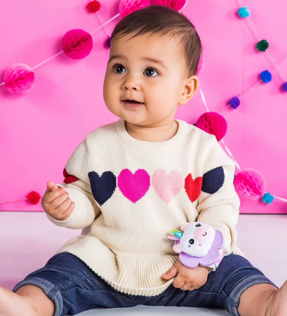 Yndige Bright Starts biderangler solgt i en 2-pak i lilla og rosa nuancer som forestiller en enhjørning og en lama.