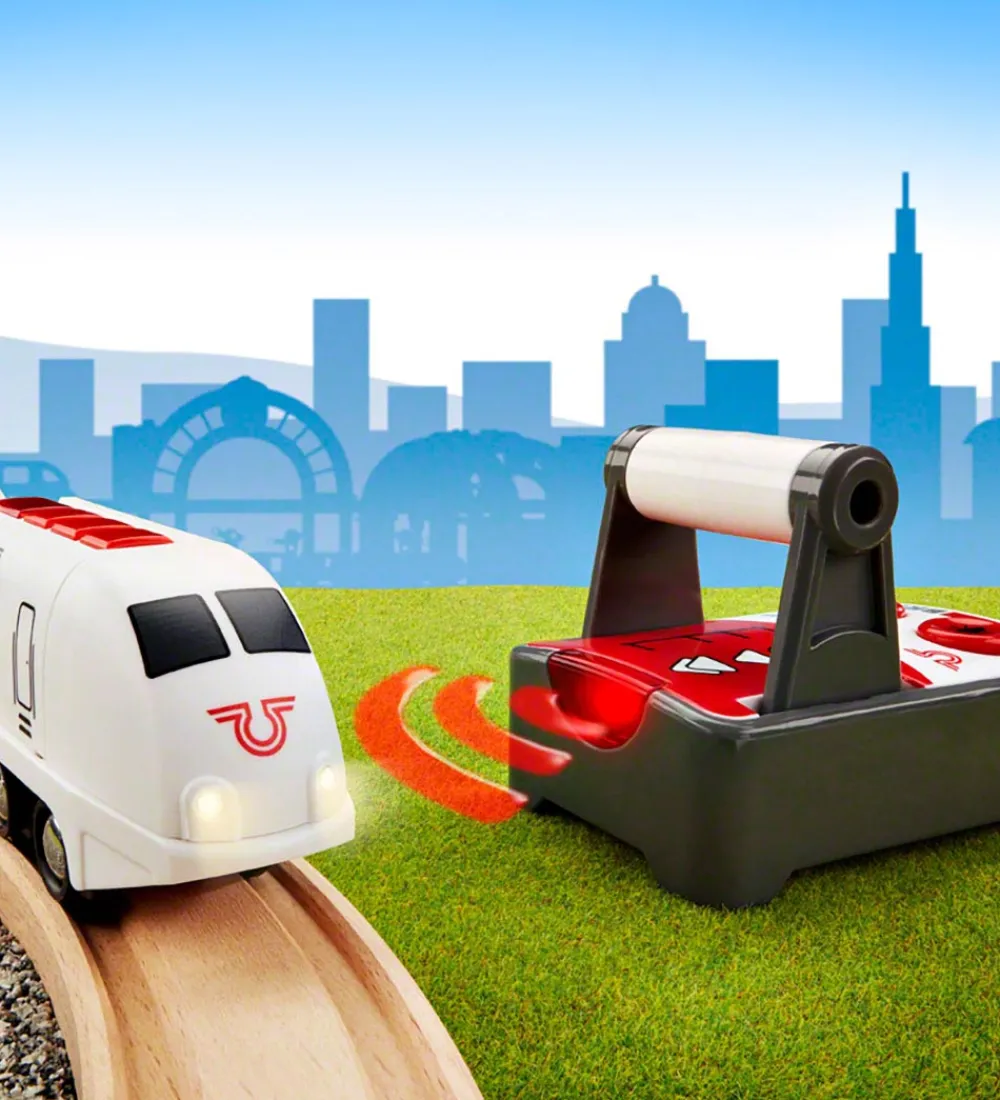 BRIO passagertoget har plads til den lille mand, hvis ben kan bøjes, så han passer perfekt i køretøjet. Fjernbetjeningen har bak- og stopfunktioner, der er nemme at bruge, samt to forskellige fartindstillinger fremad. Den har også A og B-frekvenser, så flere togvogne kan køre på samme bane. På fjernbetjeningen er der to knapper med lys- og lydeffekter. Toget kan også styres med knapper på lokomotivet.