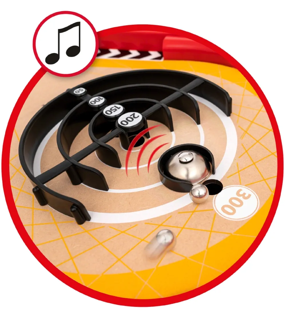 De fem metalkugler skal i hullerne med point, og det gælder om at få så mange som muligt. Der medfølger også små forhindringer, der valgfrit kan tilføjes på banen. Det bedste skud giver 300 point og markeres af en klokke.