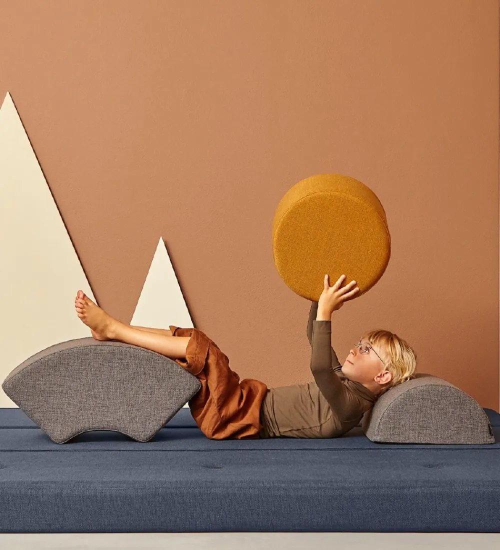 by Klipklap tumlemøblet har en buet form og en flad bund. Det lille barn kan ligge på maven hen over buen, så rygmusklerne trænes, det større barn kan sidde på den, og de voksne kan bruge den som fodstøtte. Tumlemøblet kan også indgå i børnenes leg på sjove og kreative måder. Ved at kombinere flere by KlipKlap tumlemøbler får man endnu flere muligheder for at skabe et legesygt univers på børneværelset, i stuen eller i legekrogen.
