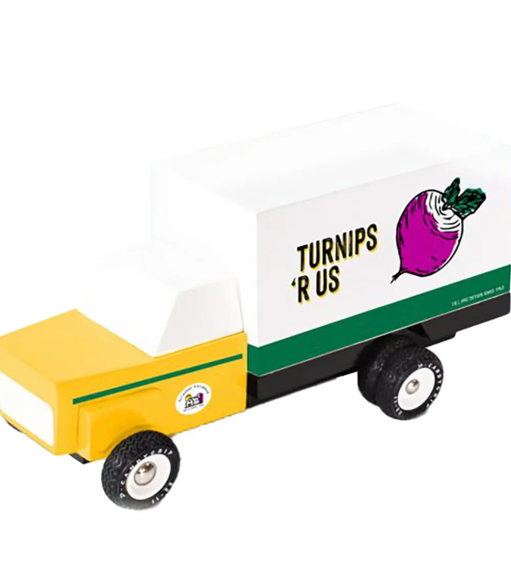 Sej Candylab bil malet som en sjov kålroe-vogn, og på bilens sider står ‘Turnips ‘R US’ i sort.