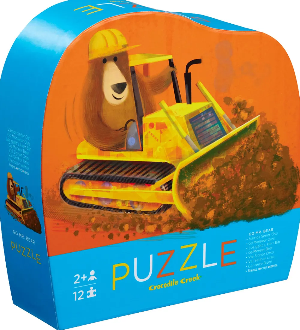 Cool Crocodile Creek puslespil med et motiv af en sej bjørn der skovler jord.