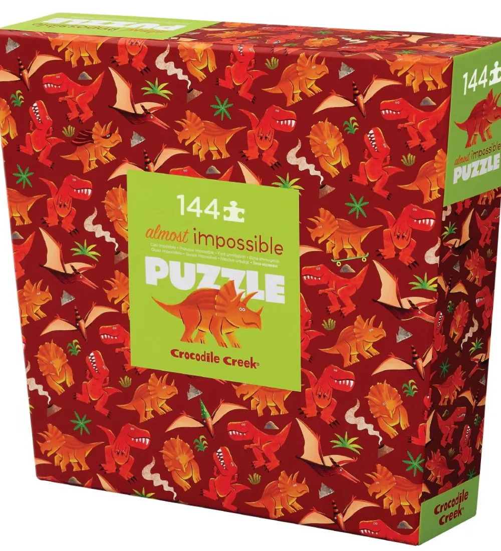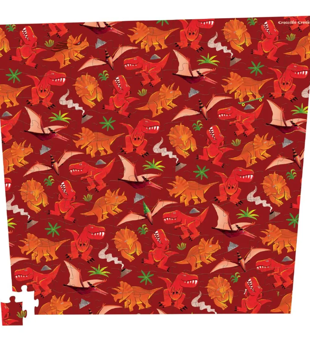 Fedt Crocodile Creek puslespil med motiv af røde dinosaurer.