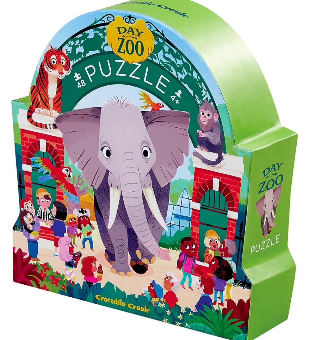 Fint Crocodile Creek puslespil med motiv, der forstiller en masse børn på besøg i en zoologisk have.