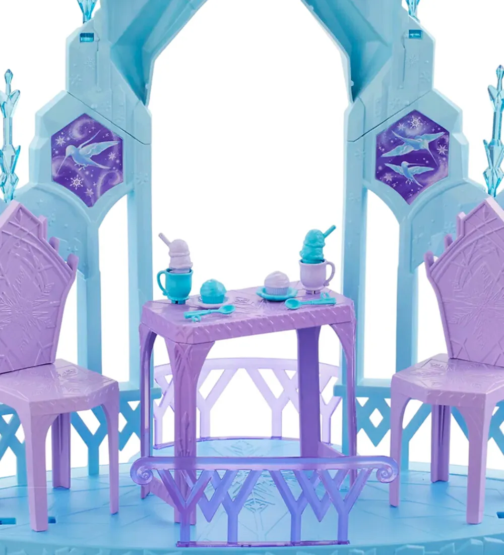 Disney Frozen slottet er et dukkehus i to etager Slottet har to etager, og man kan lege med det hele vejen rundt. På den nederste etage man man folde en seng ud, og i den ene side kan man få Olaf til at dukke op ved at trykke på en knap. En vindeltrappe fører op til den anden etage, hvor der er plads til at barnets dukker kan sidde til teselskab.