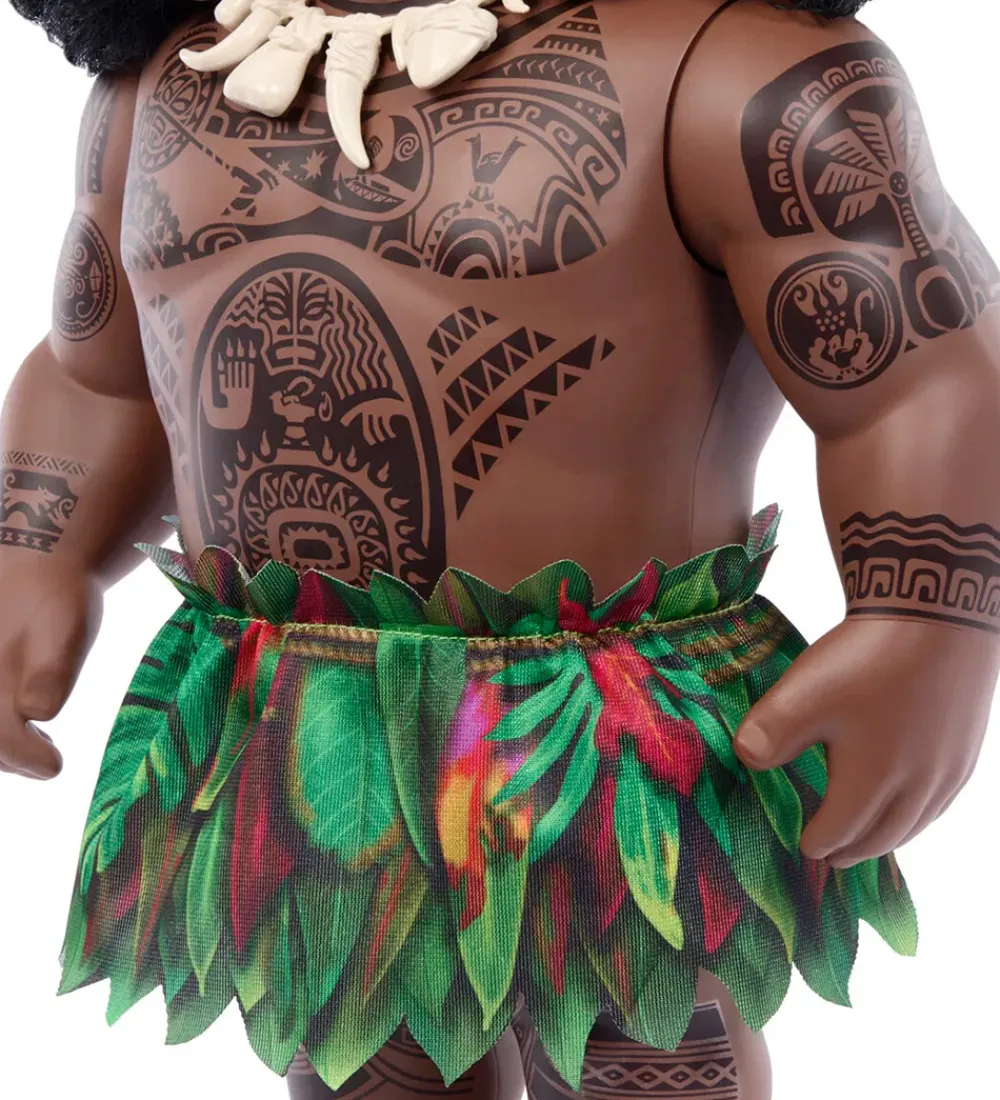 Fantastiske Disney Princess figurer der forestiller Vaiana og Maui. Moana er klædt i en rød nederdel med flotte mønstre, mens Maui har et traditionelt, farverigt outfit. Perfekt til små fans af eventyr.