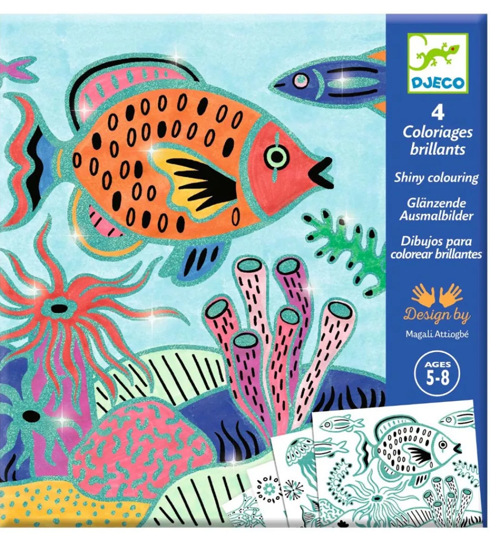 Fine Djeco farvelægningskort med motiver fra under havets overflade med metalliserede konturer