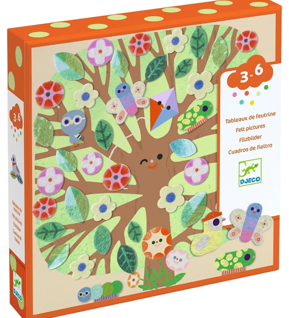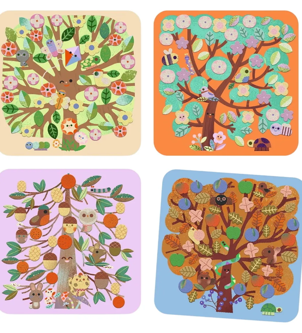 Dejligt Djeco kreasæt, hvor barnet kan lave flotte filtbilleder af et træ gennem årstiderne.