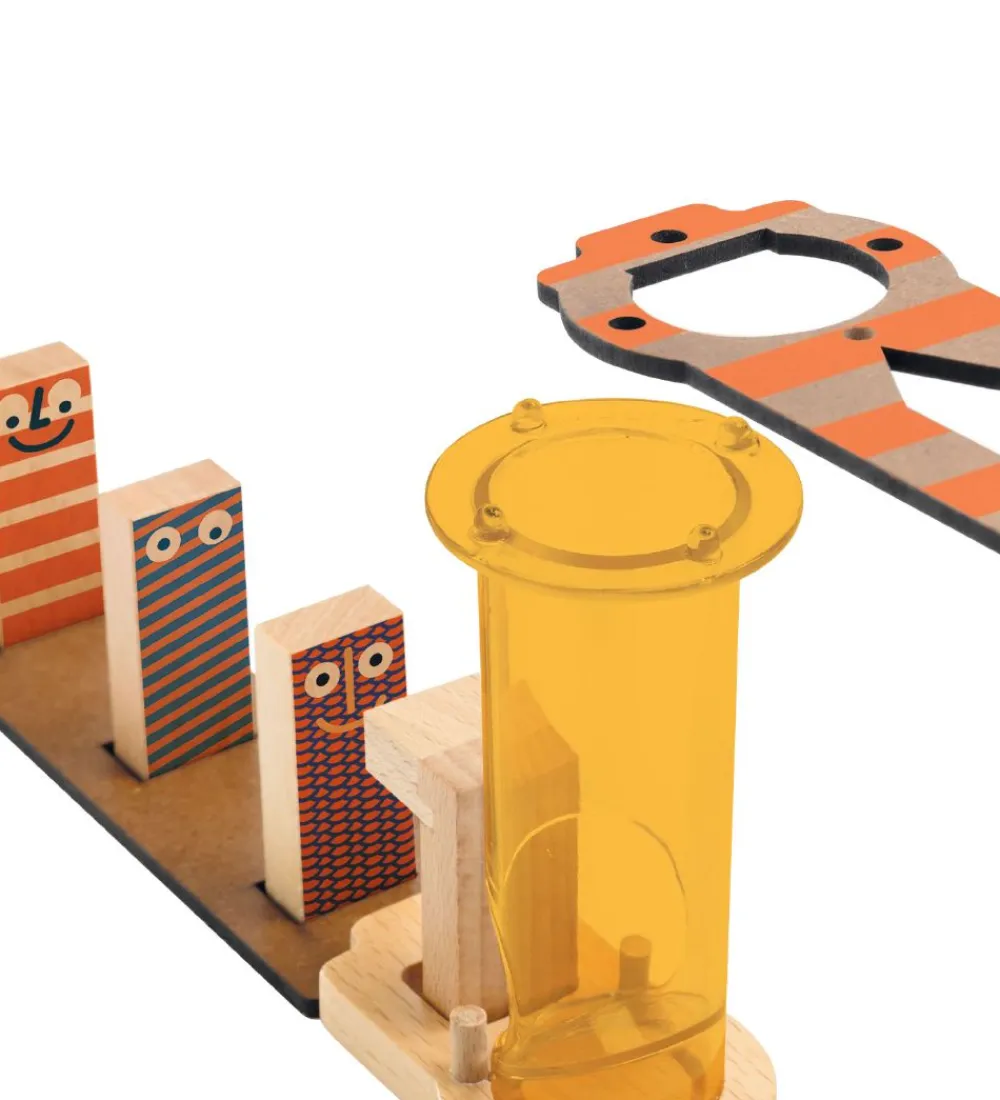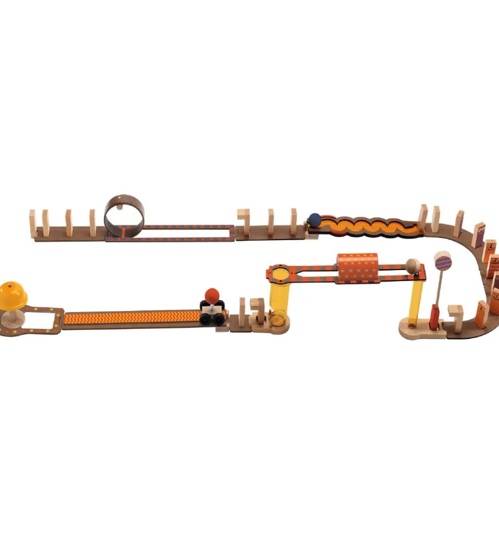 Djeco kuglebanen består af 42 dele, som kan sættes sammen på et utal af måder. Spillet indbyder til mange timers sjov og opfindsomhed med at konstruere en bane og se, hvordan der bliver skabt en kædereaktion.