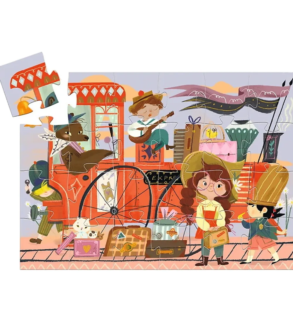 Djeco puslespillet har en firkantet, aflang form og består af 36 brikker i kraftigt pap.