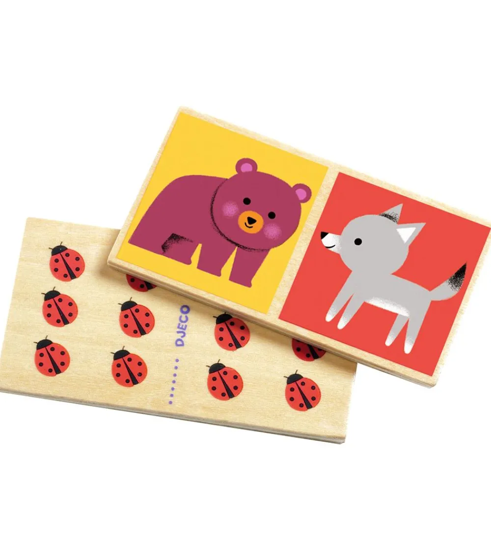 Flot Djeco domino med illustrationer af forskellige vilde dyr.