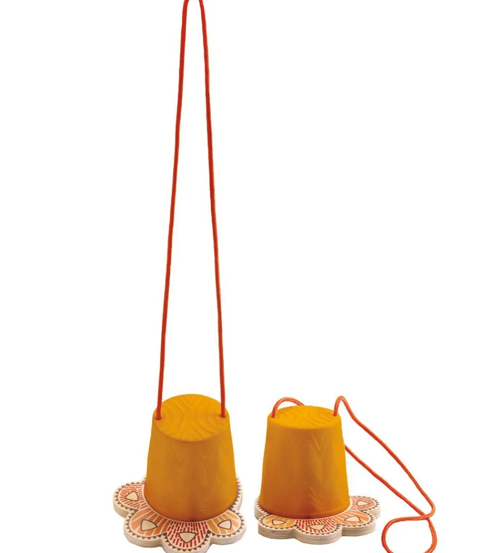 Djeco løbespandende fungerer som en slags stylter. Plastikken er hårdfør og spandende holder derfor til masser af leg. Under bunden har løbespandene anti-slip gummibelægning.