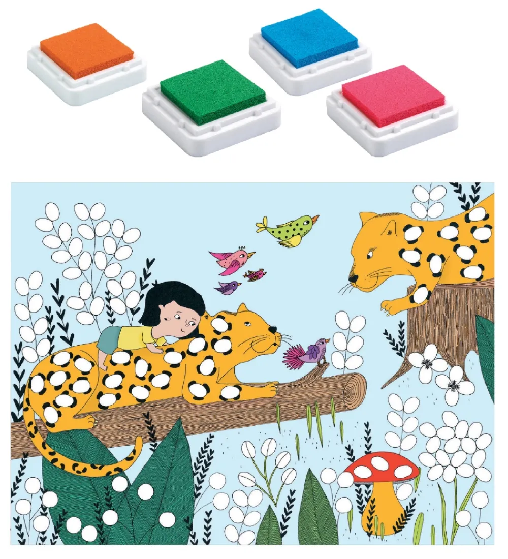 Djeco fingermalingen er perfekt til de kreative små, da de skal sætte fingrene på malingpuderne og derefter på arkene, for at komme igang med at male flotte motiver. Malingen er vaskbar.