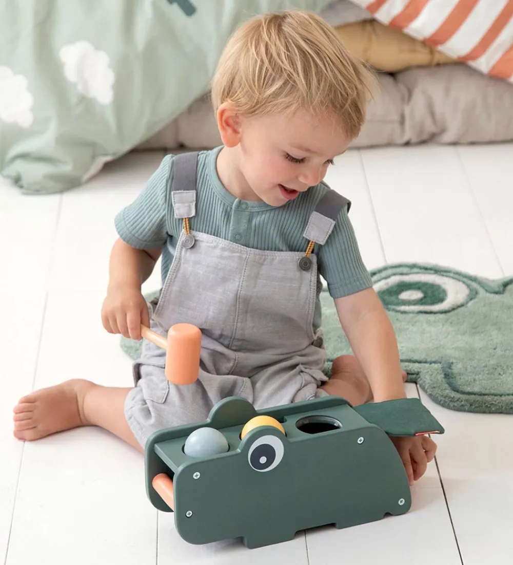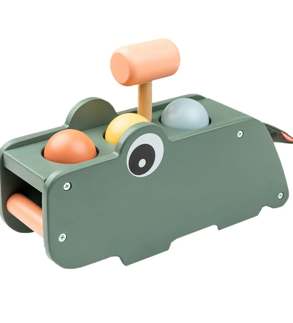 Sjov Done by Deer hammerbræt formet som en krokodille i grøn og der medfølger farverige bolde.