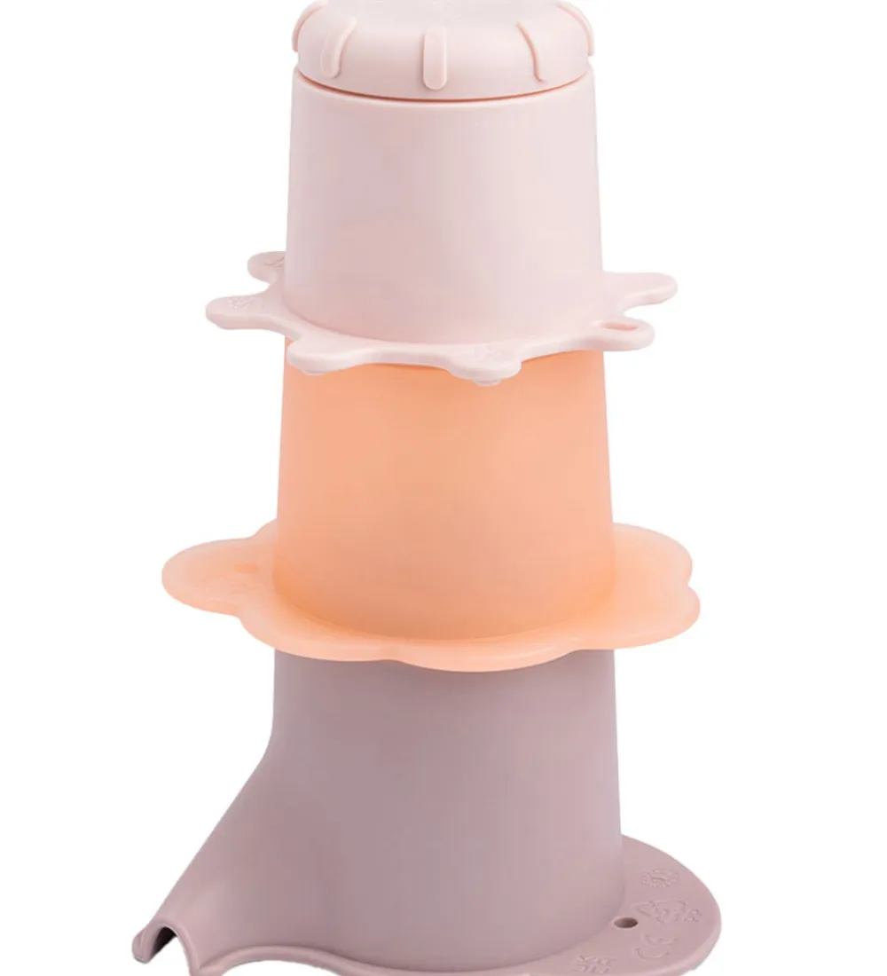 - 1 skål formet som en sol i lyserød med åbne/lukke-funktion og små huller i bunden