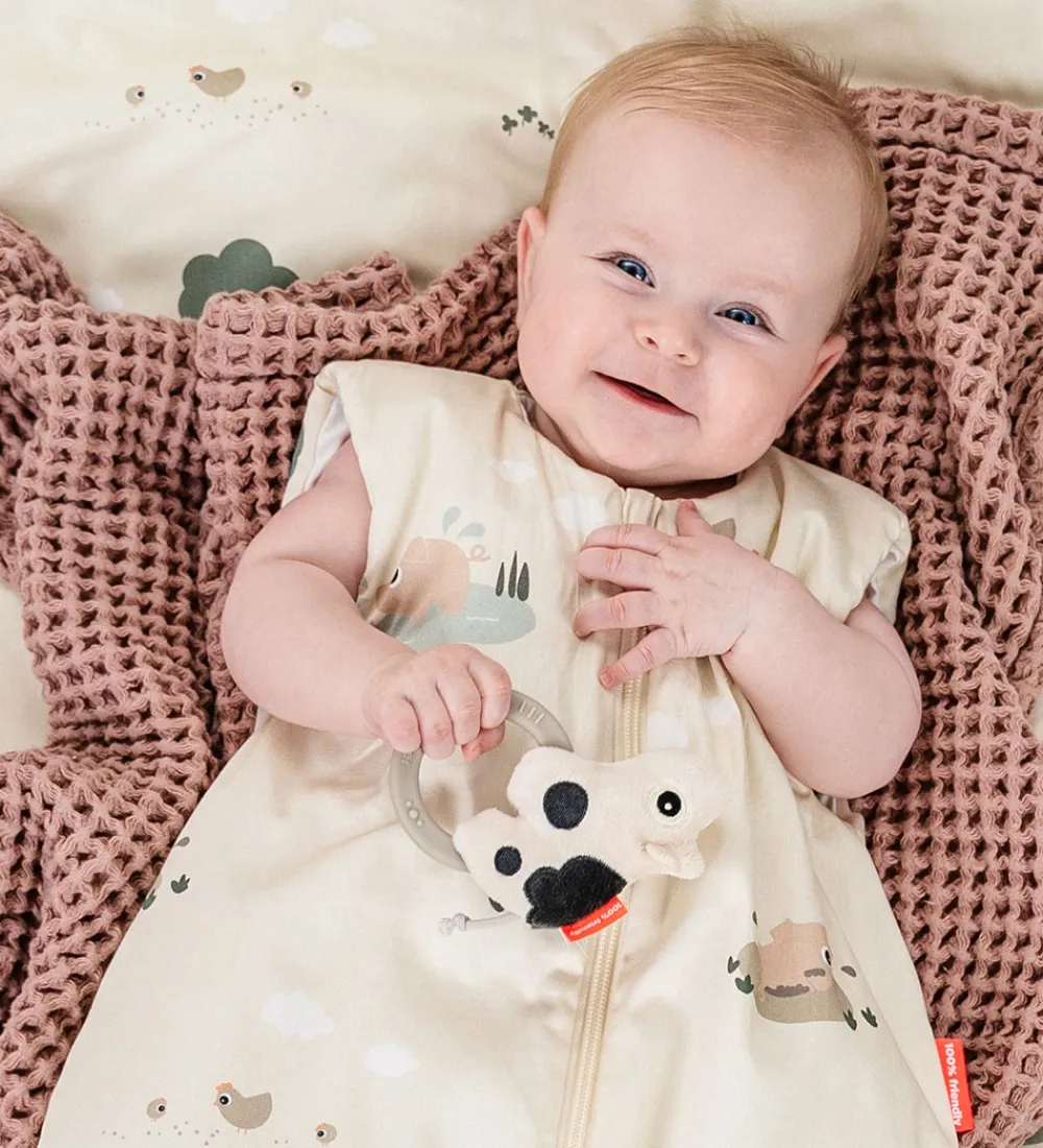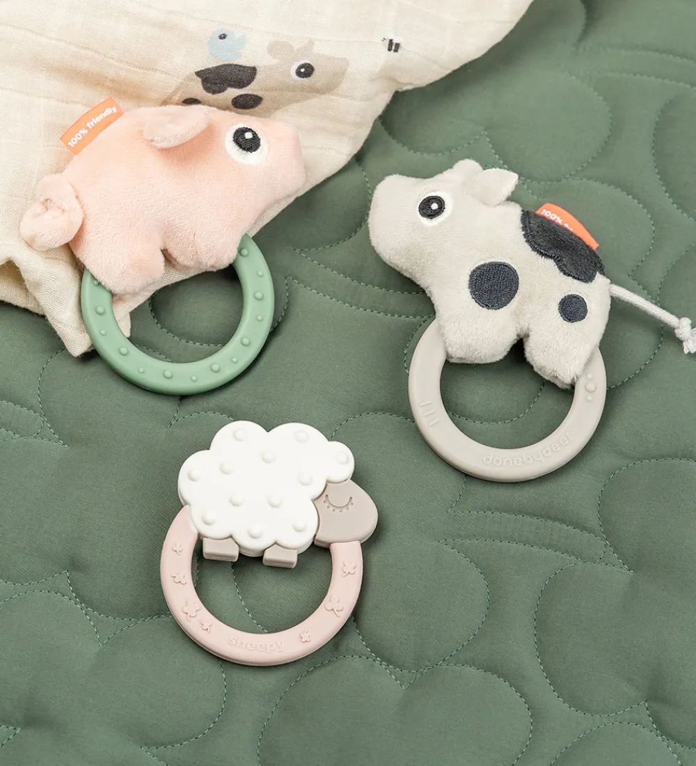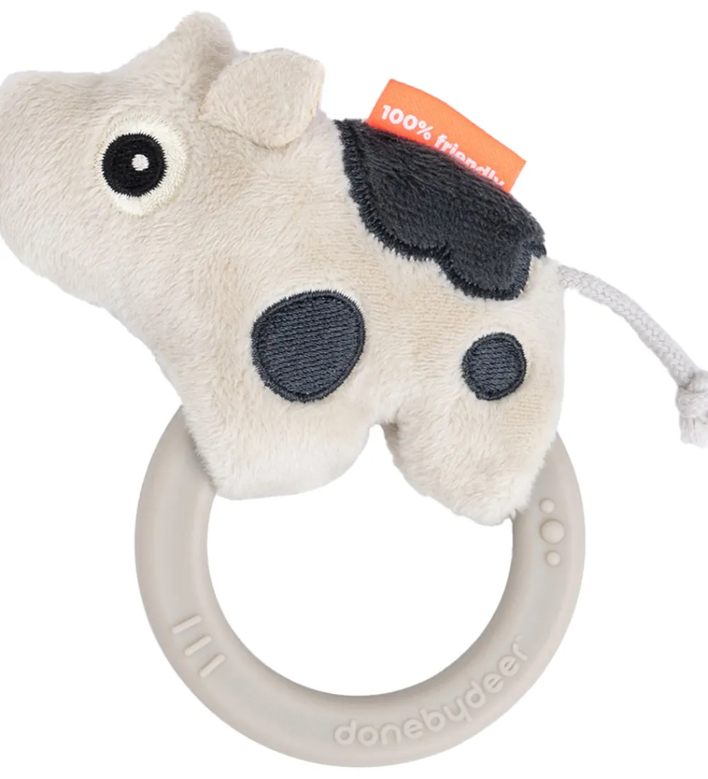Done by Deer ranglen består af en bidering og lille bamse, som rasler, når barnet ryster med den. Bideringen passer perfekt ind i den lille barnehånd, og er det ideelle stykke legetøj til barnet der øver sig i at gribe.