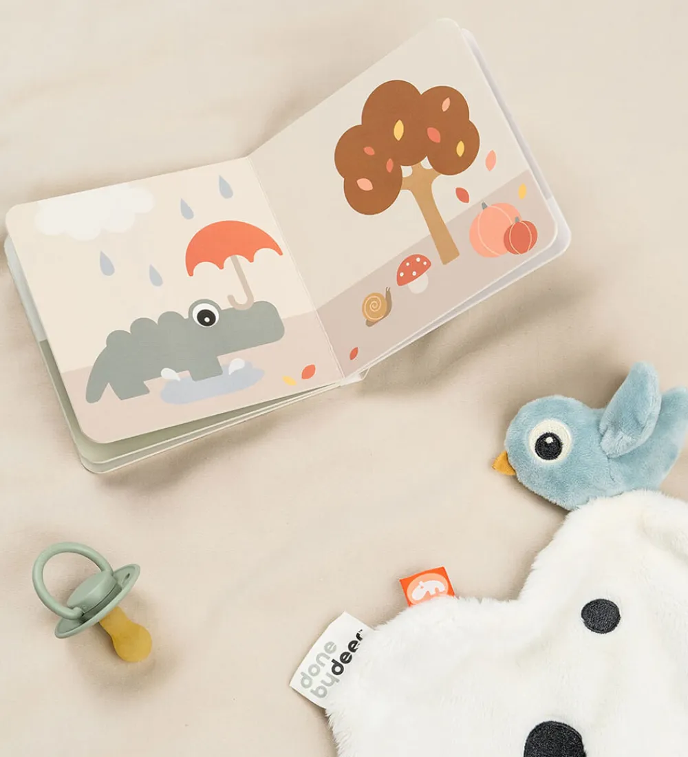 Done By Deer bogen er en sjov og spændende papbog med fine illustrationer af Croco og de forskellige årstider. Sidernes print med krokodillen Croco og andre farverige motiver gør det sjovt for barn at lære om de forskellige årstider.