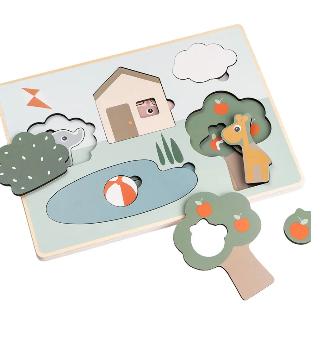 Puslespillet træner finmotorik og pincetgreb samt udvikler barnet logisk tænkning og problemløsninger. Derudover er der sjove farver for visuel stimulering.