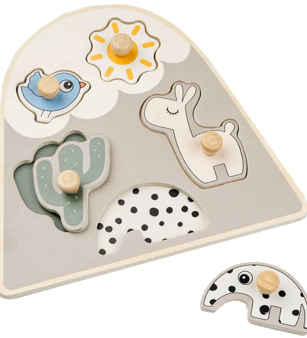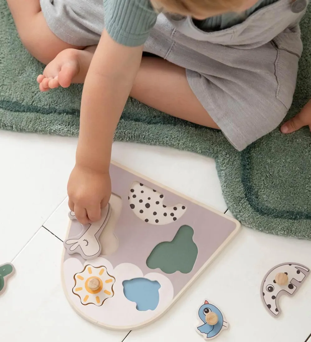 Done by Deer puslespillet er sjovt for de mindste, der skal lære former og logik og er i gang med at udvikle koordinationssansen. Brikkerne har små knopper på, så det er nemt for de små hænder at få fat i brikkerne.