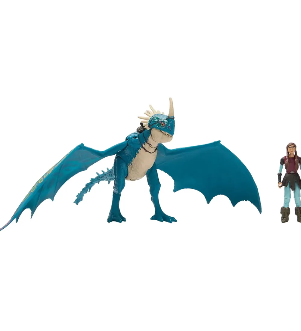 Dragons legetøjsfigurerne har bevægelige led og vinger, så Astrid kan side på ryggen af dragen imens de flyver afsted.