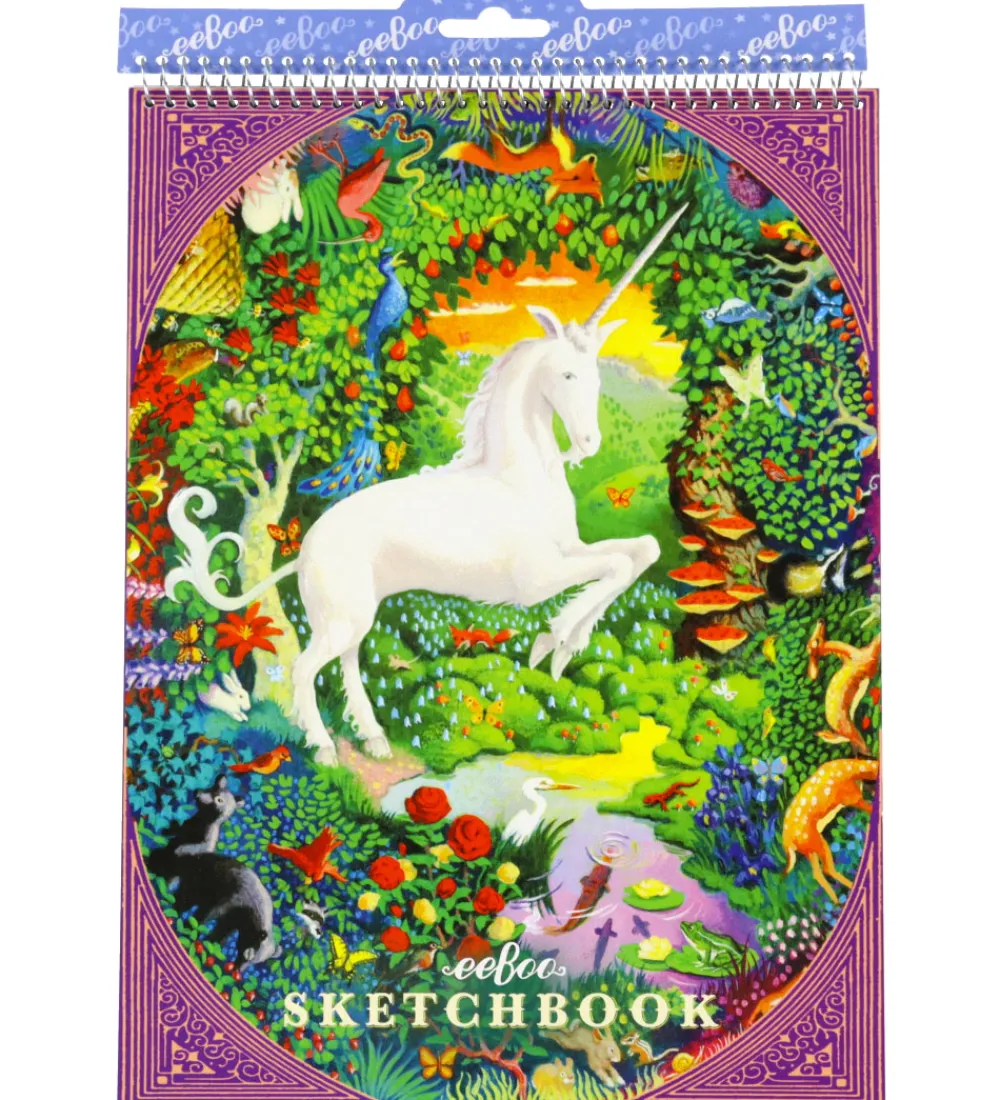 Sej Eeboo skitseblok med en enhjørning og flot natur på forsiden.