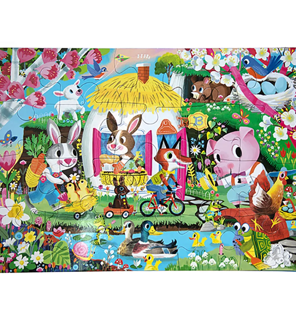 Flot Eeboo puslespil med motiv en masse søde dyr i et spirrende forårslandskab.