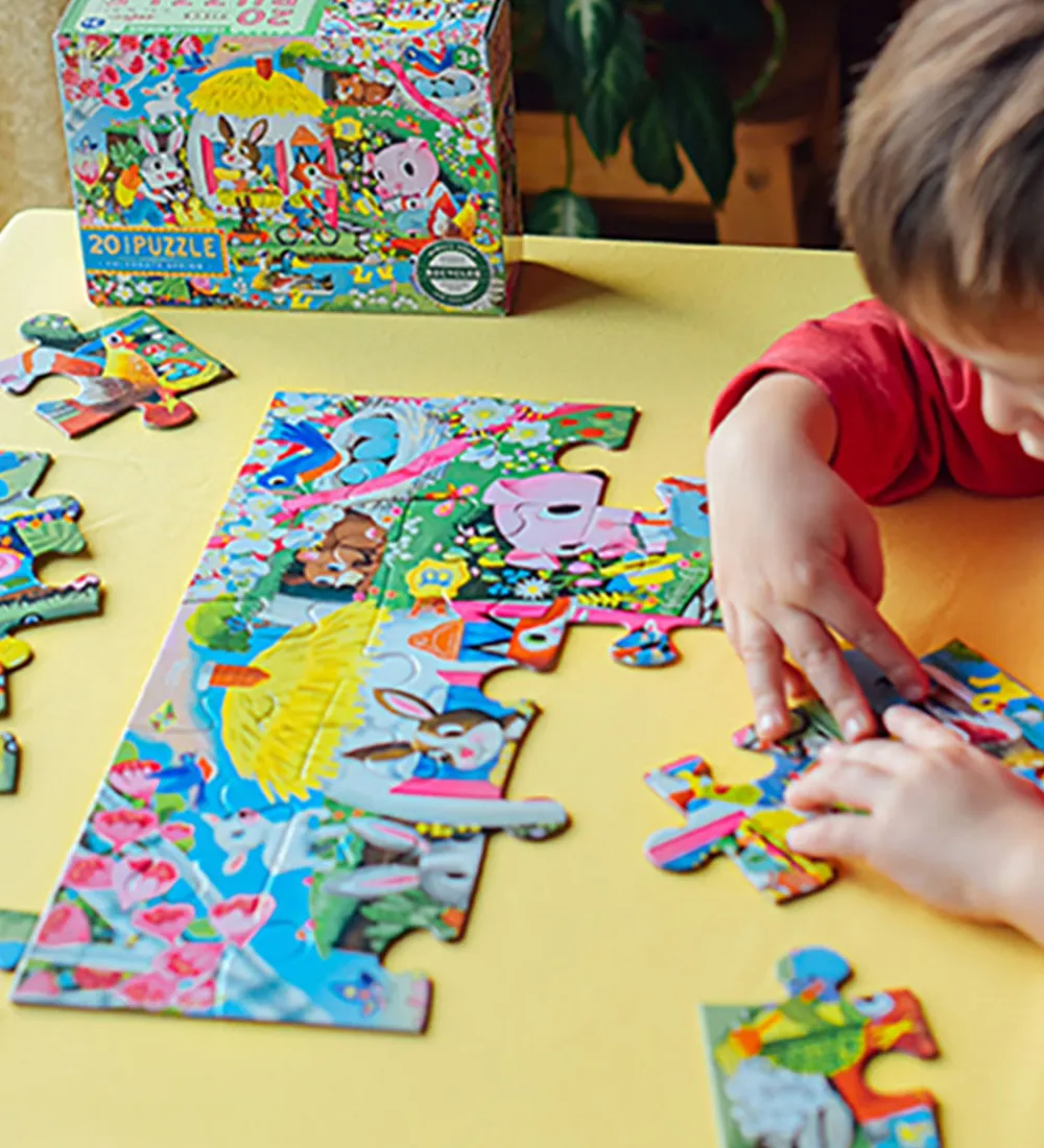 Eeboo puslespillet har samlet en firkantet udformning og består af i alt 20 brikker.