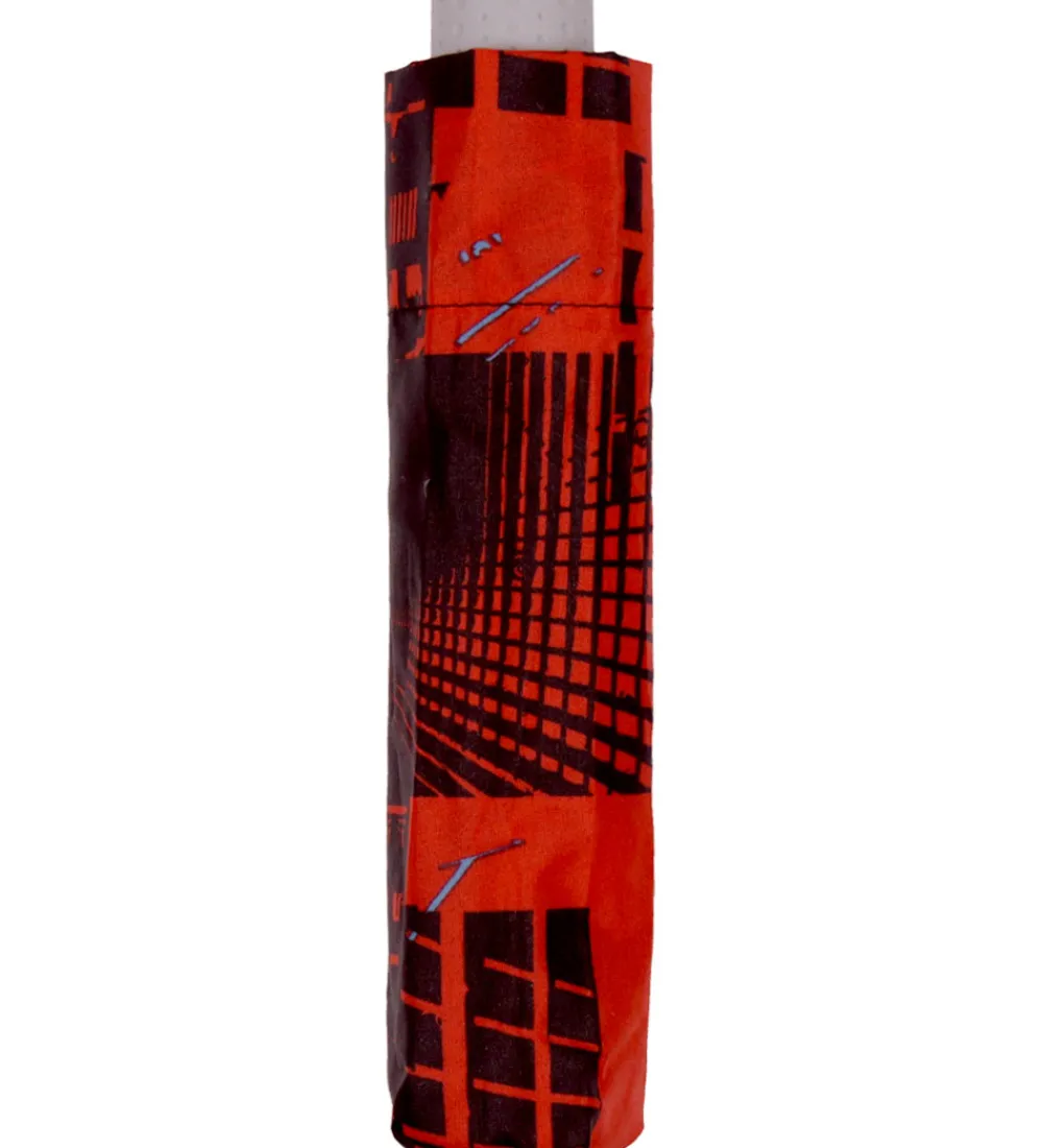 Smart Ergobag paraply i rød og sort med et flot mønster.
