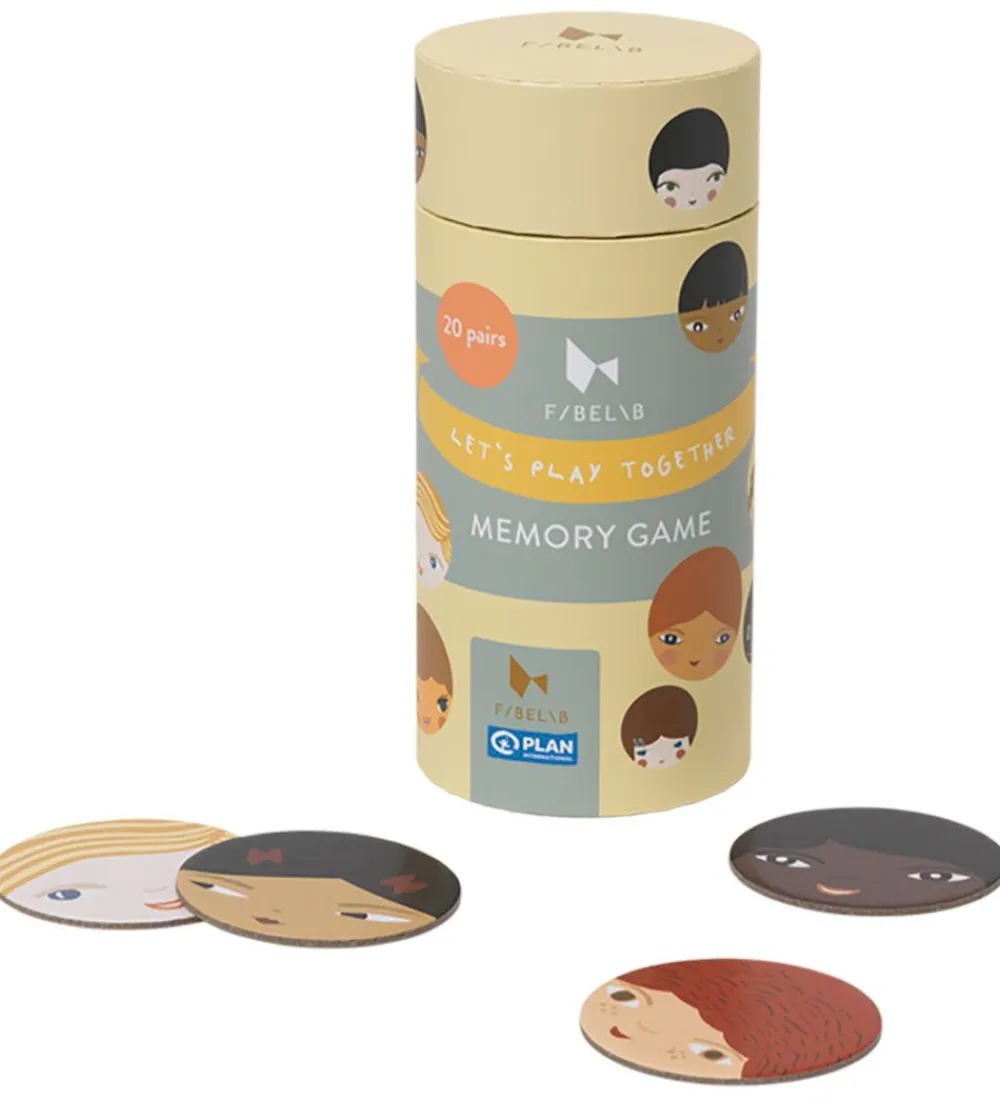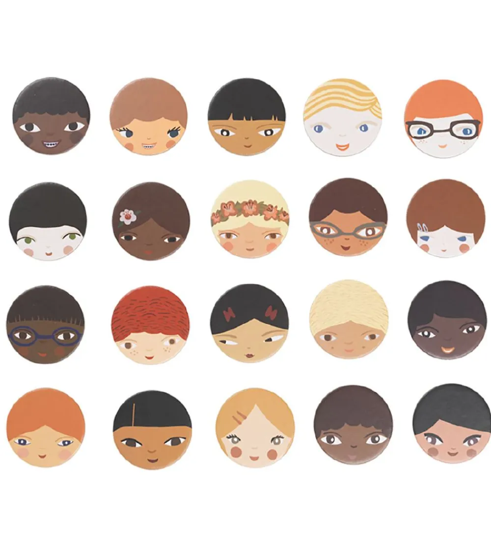 Sjov Plan International x Fabelab vendespil i flere forskellige farver, som forstiller sig Fabelab vennernes hoveder.