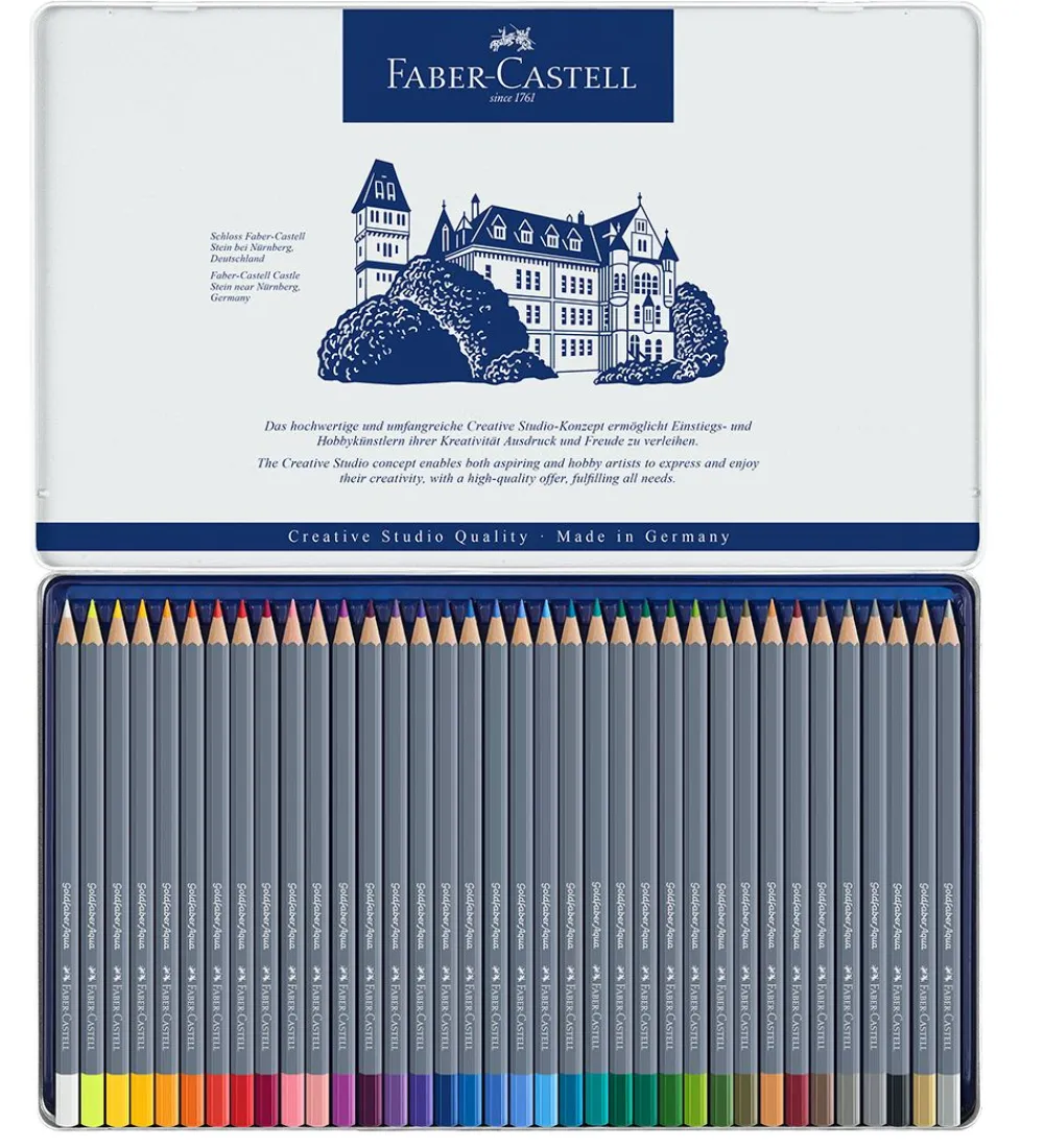 Fine Faber-Castell farveblyanter bestående af 36 akvarel farver.