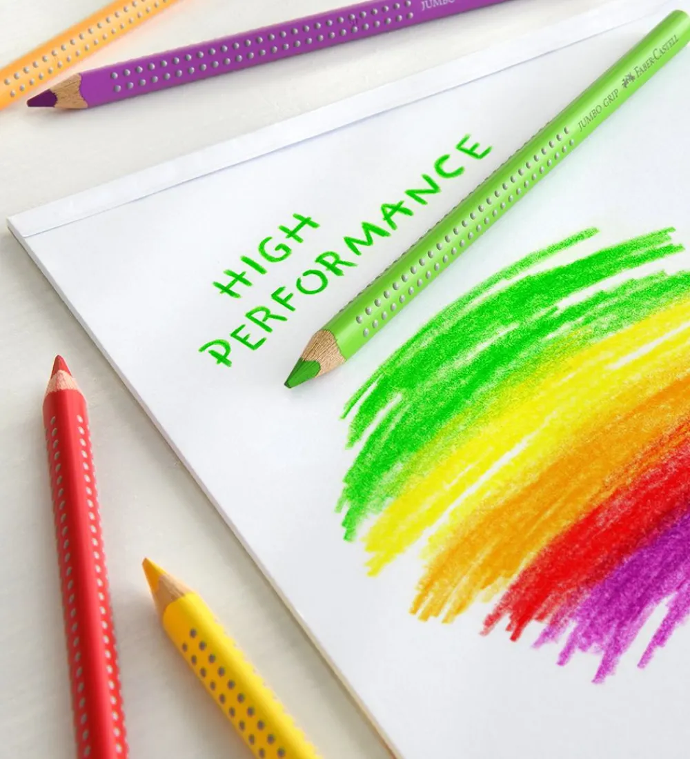 Skønne Faber-Castell farveblyanter bestående af 16 farver, i en god jumbo version.