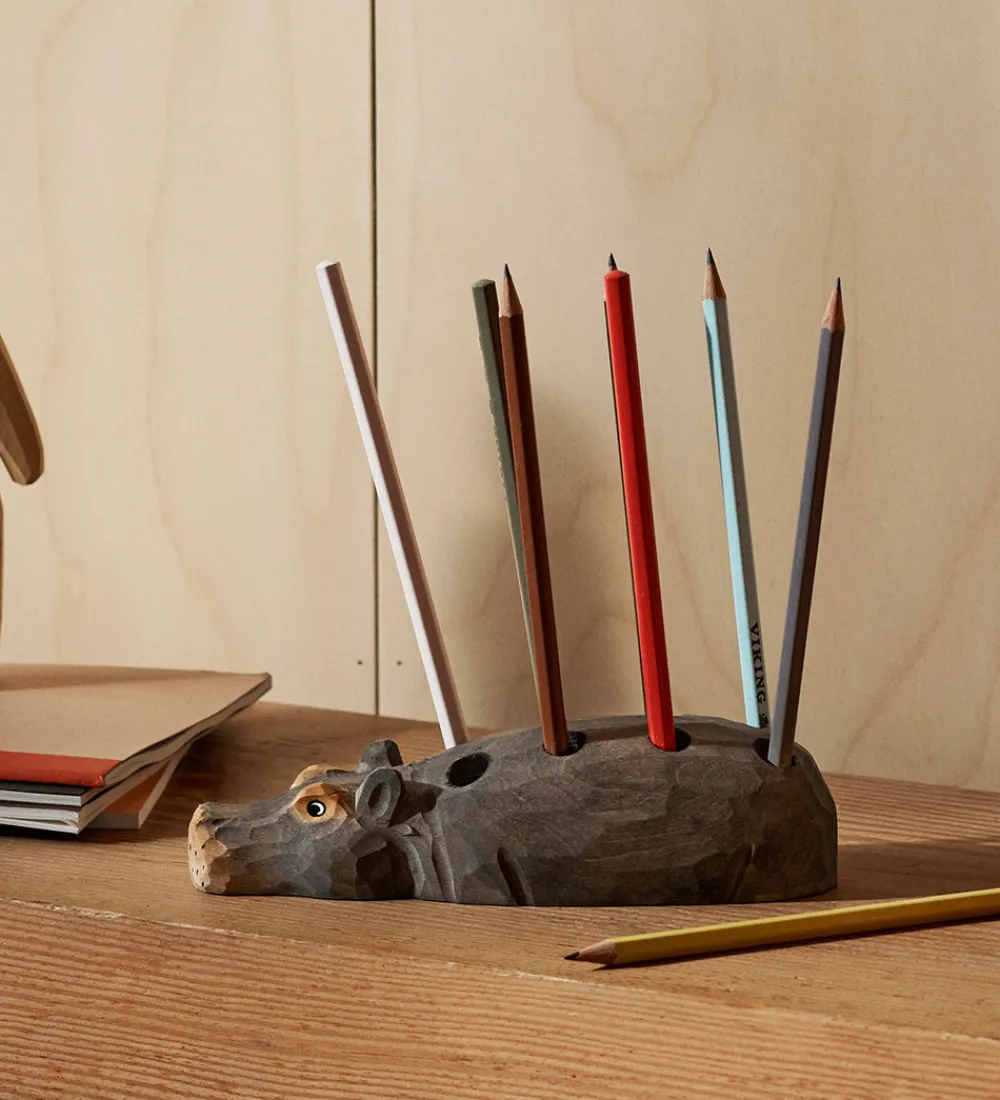 Sød firm Living blyantholder i træ med form som en flodhest.