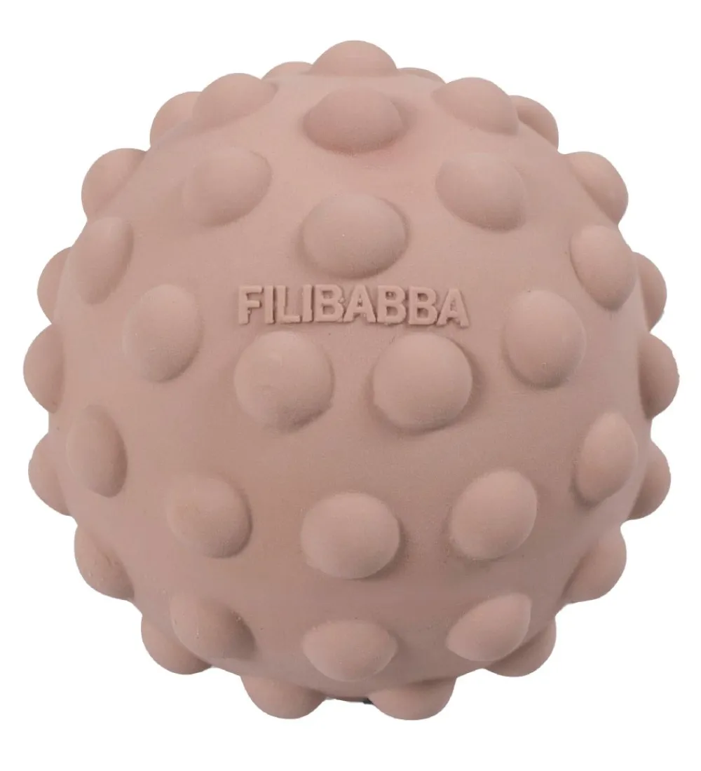 Filibabba motorikbolden er rund med små knopper over det hele, som er med til at styrke barnets sanser. Bolden er i naturgummi og den er derfor sikker for barnet at bide i. Indvendigt er der en rangle, som laver beroligende lyde når man leger med bolden. Bolden kan trykkes på og er perfekt til de små, da den styrker både sanserne og motorikken.